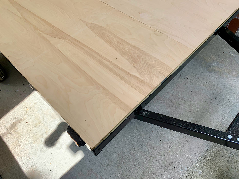 The hardest part so far has been waiting to do this! From the moment I conceived the shape I wanted to dance out to my shop and cut it out. But first ... of course, I had to acquire the trailer kit - the footers and foundation, take delivery of plywood and "sticks" - the deck or "slab" of this home away from home, and wire and bolt and undercoat the whole collection to make it ready for the walls. Done!